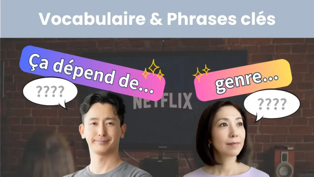 Si vous voulez une expression polyvalente, vous pouvez dire : « Bāi ni yorimasu ». « Bāi (ばあい) » signifie « le cas ». C’est l’équivalent de « Ça dépend des cas / des situations ». Comme le thème de la conversation de cette semaine est les séries TV, notre phrase clé est : « Dorama ni yorimasu ne » (Ça dépend de la série, hein ?). Grâce à la particule « ne (ね) », qui exprime l’empathie ou l’exclamation, la phrase sonne très naturelle !